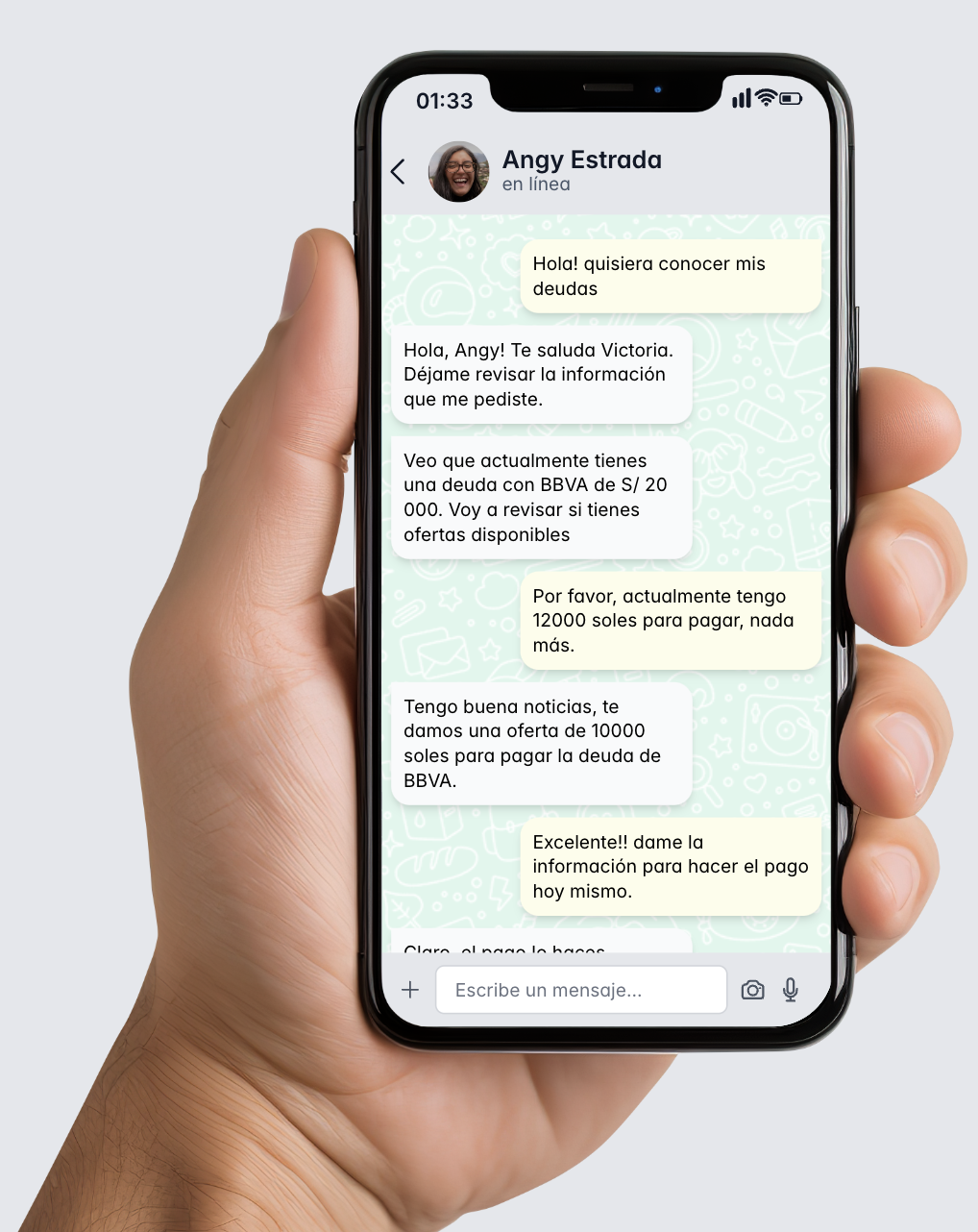 Un especialista financiero analizará tu caso y creará un plan para negociar directamente con tus entidades financieras desde tu celular.